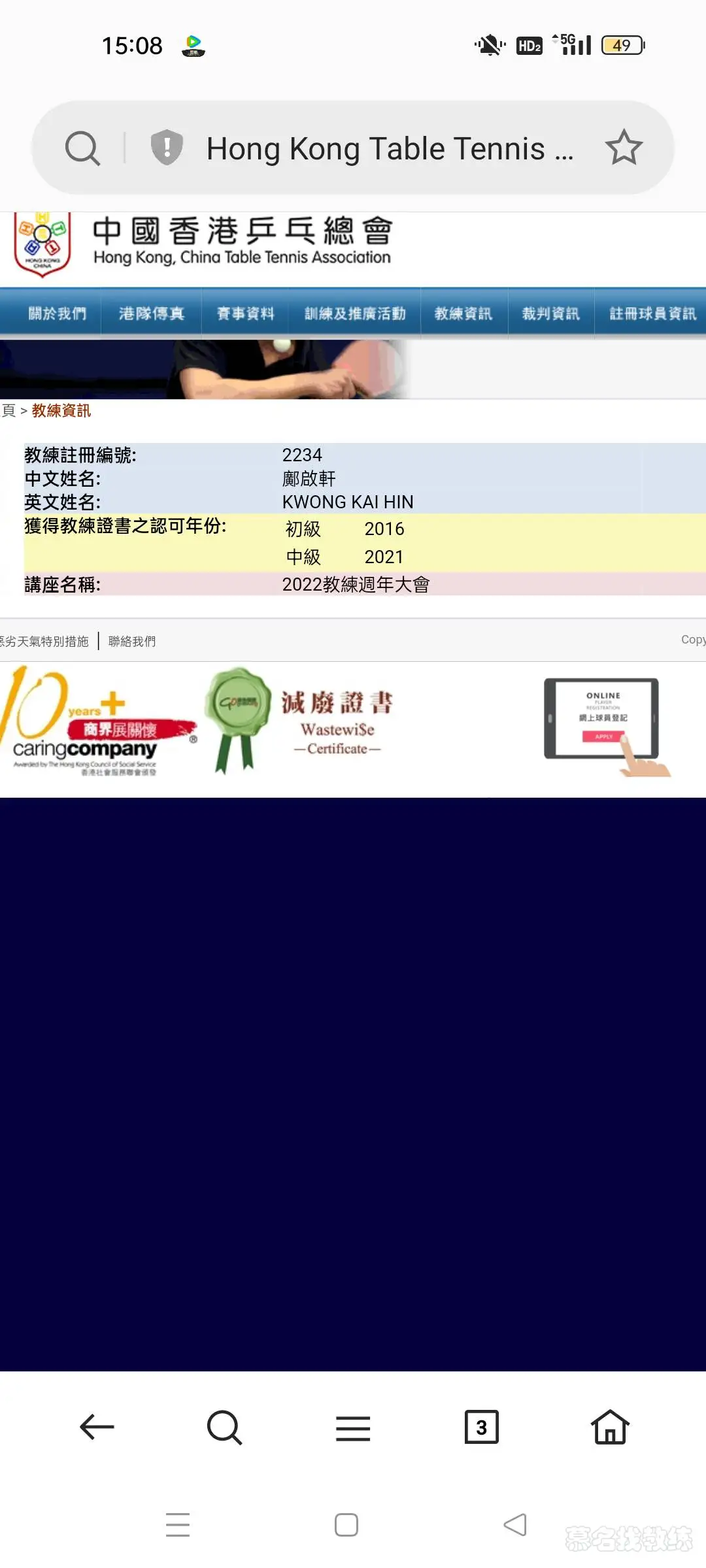 2014年曾获得香港乙组男单冠军