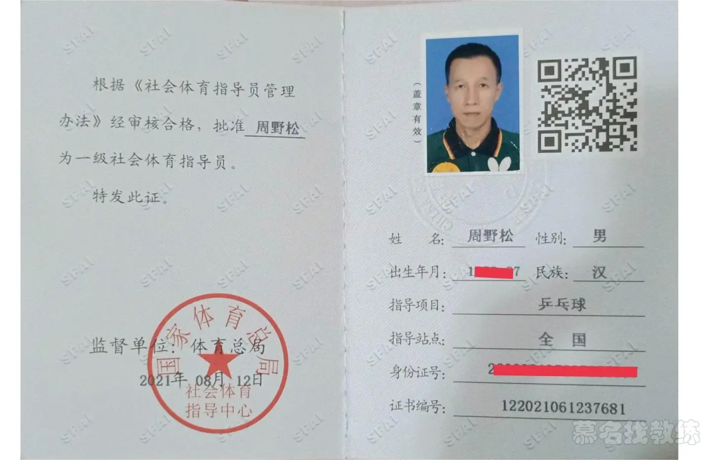 国家一级乒乓球教练