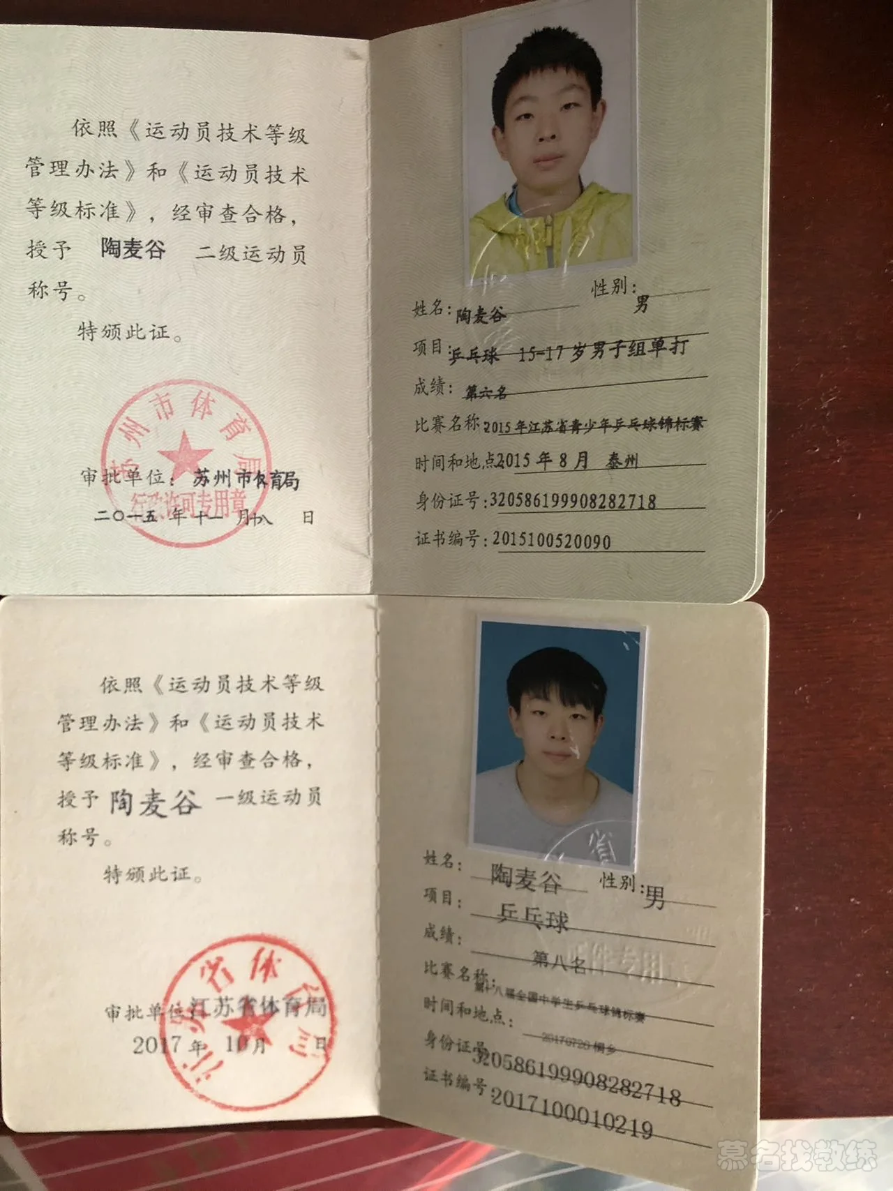 2017年获得国家一级运动员的称号(百度可查)曾获得全国大学生锦标赛团体季军,单打季军;江苏省乒乓球球王争霸赛亚军;苏州市乒乓球青年组球王的成绩(可提供奖状)