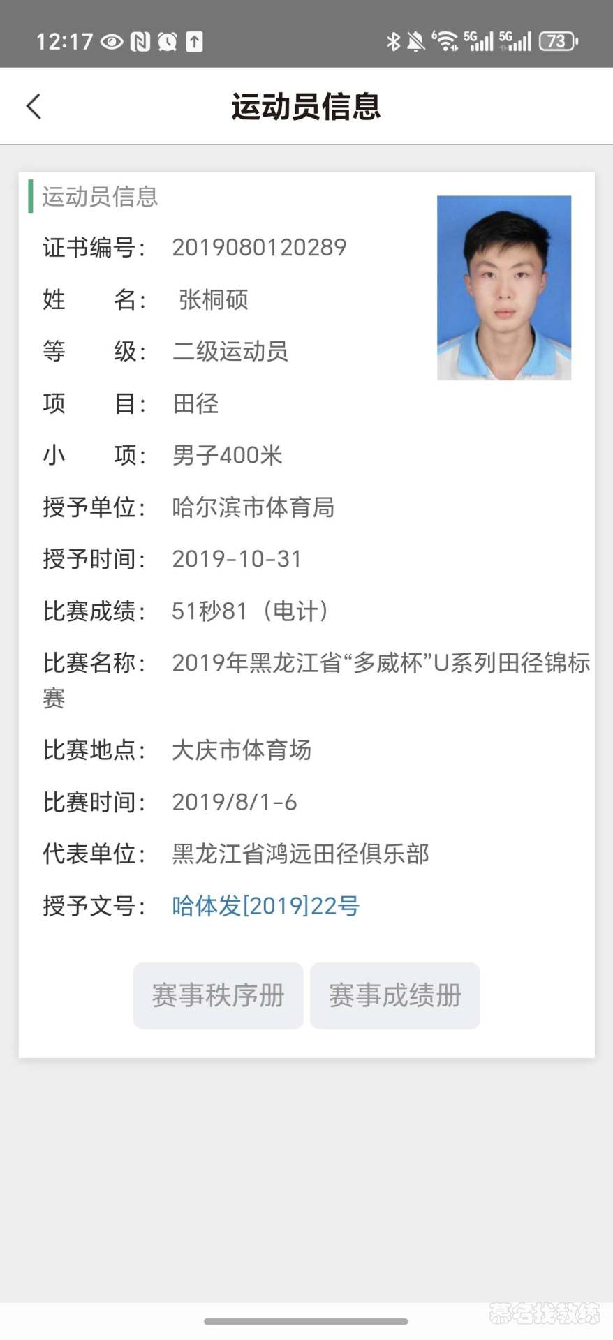 1. 2019黑龙江省中学生冠军 2019年黑龙江省锦标赛冠军 2024年ptr教练员课程认证 ptr教练员