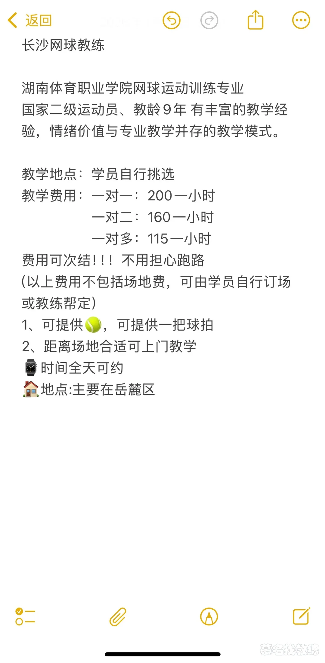 毕业于湖南体育职业学院运动训练系,国家二级运动员证 社会指导员证 网球二级裁判证,球龄8年半 教网球六年