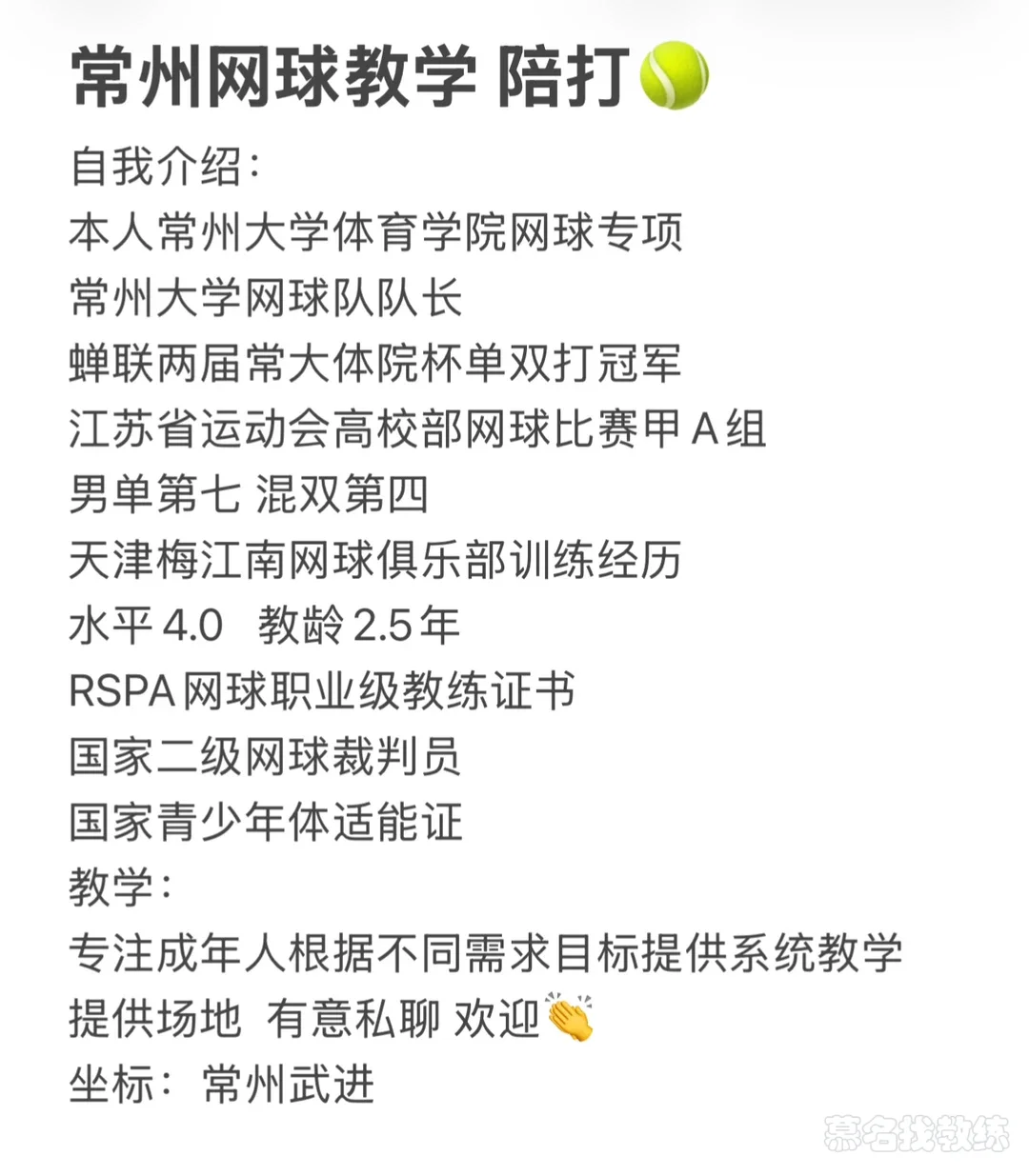 网球 3年教龄 常州大学