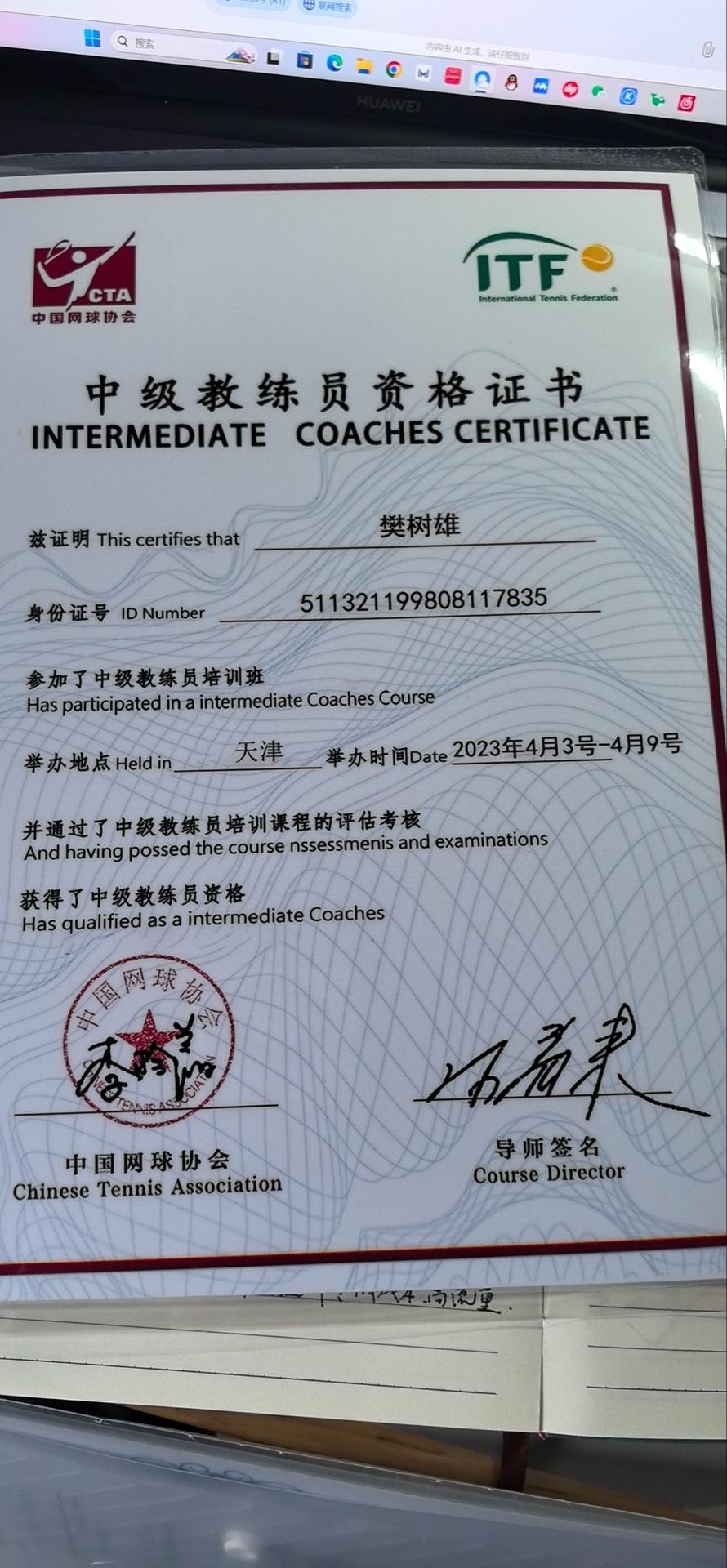 樊树雄——成都网球教练