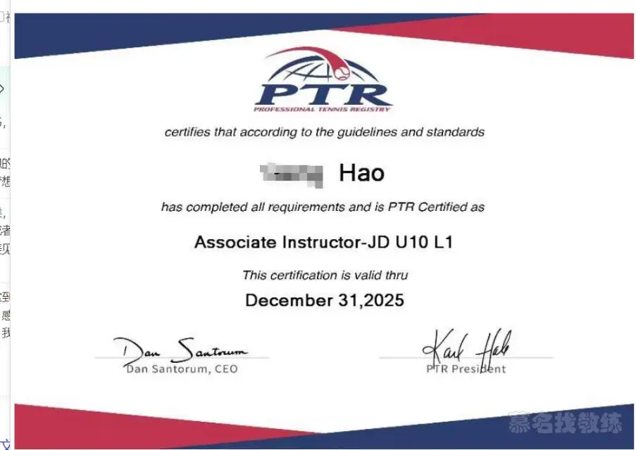 4.2024年完成PTR网球教练课程认证,获得网球教练员证书