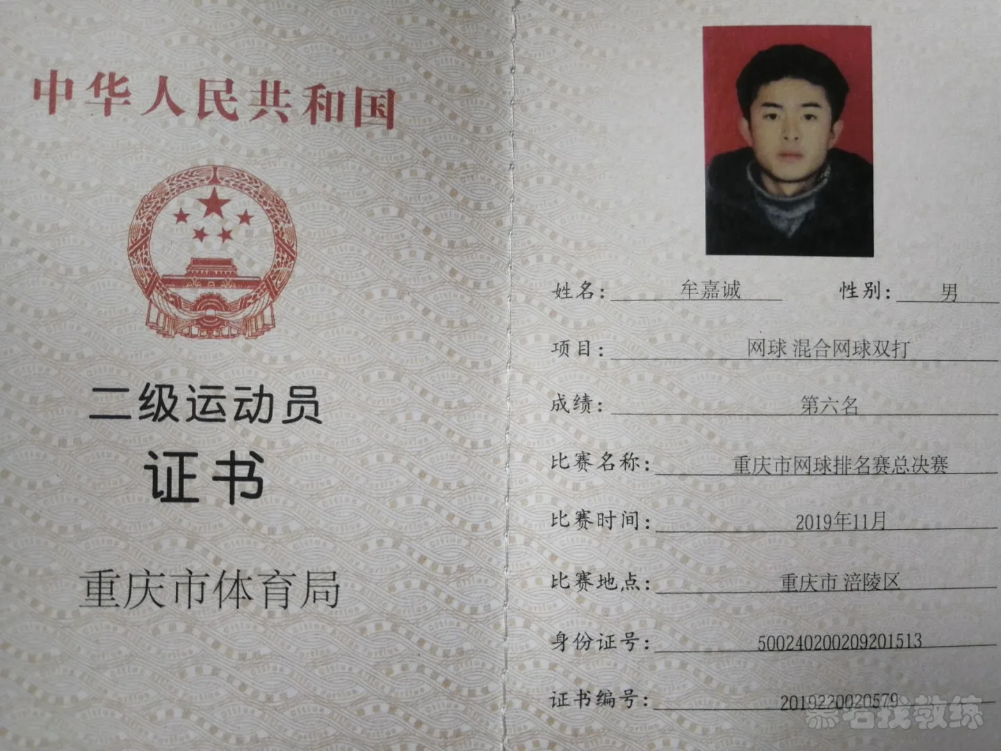 曾带领学员在重庆市打级比赛中获得第三名