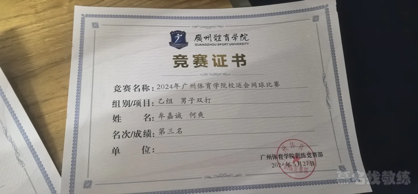 2024年广州体育学院网球比赛双打第三和团体第三