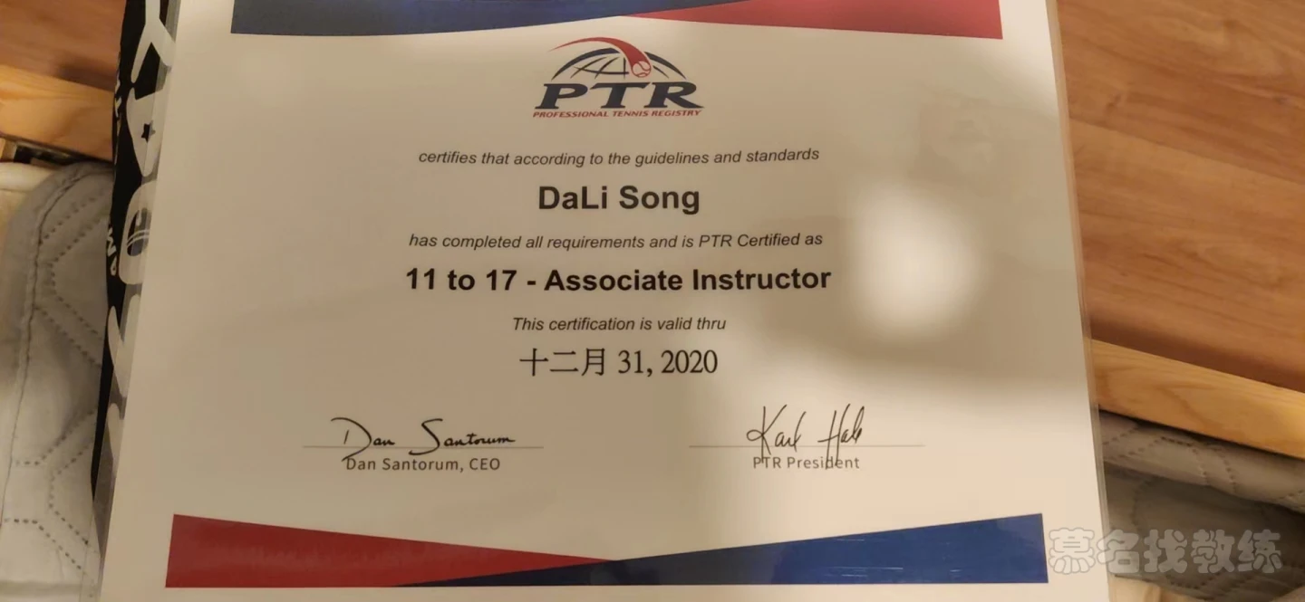 ptr网球教练证