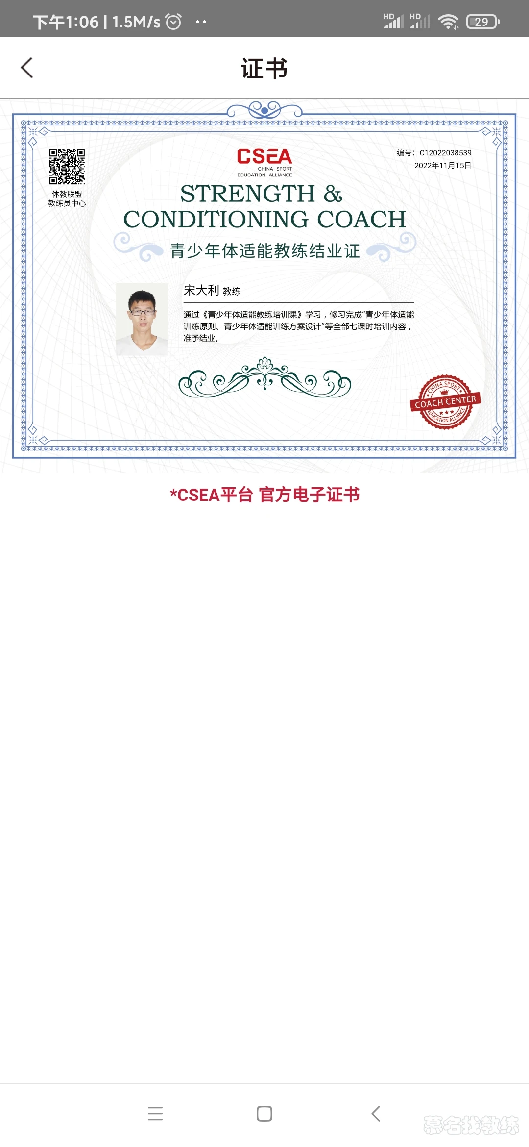 青少年体适能教练证