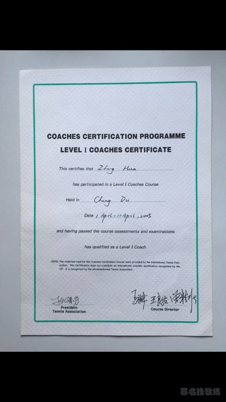 姓名:张华 籍贯:江苏无锡 教学经历:1992年接触网球球,2001年考上国家网球一级裁判员,2004年考中国际网球联合会一级教练员。 擅长领域:网球正反手底线技术教学;网球正反手拦网技术教学;高压球技术教学;发球技术教学;放小球技术教学;挑高球技术教学;各种移动击球步伐教学。 课程模式:1对1,1对2,小班课(4~6人)等实际可开展课程模式 课程流程:如少儿课程分入门教练(10课时),初级提升教学,中级进阶教学(20课时),高级突破教学;成人入门教学(6课时),成人陪练等 培训对象:少儿,成年人。 训练时间:双方协调。 训练地点:上门服务/地点灵活 常驻训练场地:南京林业大学网球场 训练装备:学员自带网球拍。