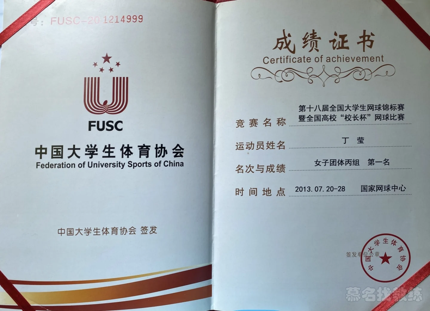 2013年在天马乡村俱乐部网球学院担任网球教练;