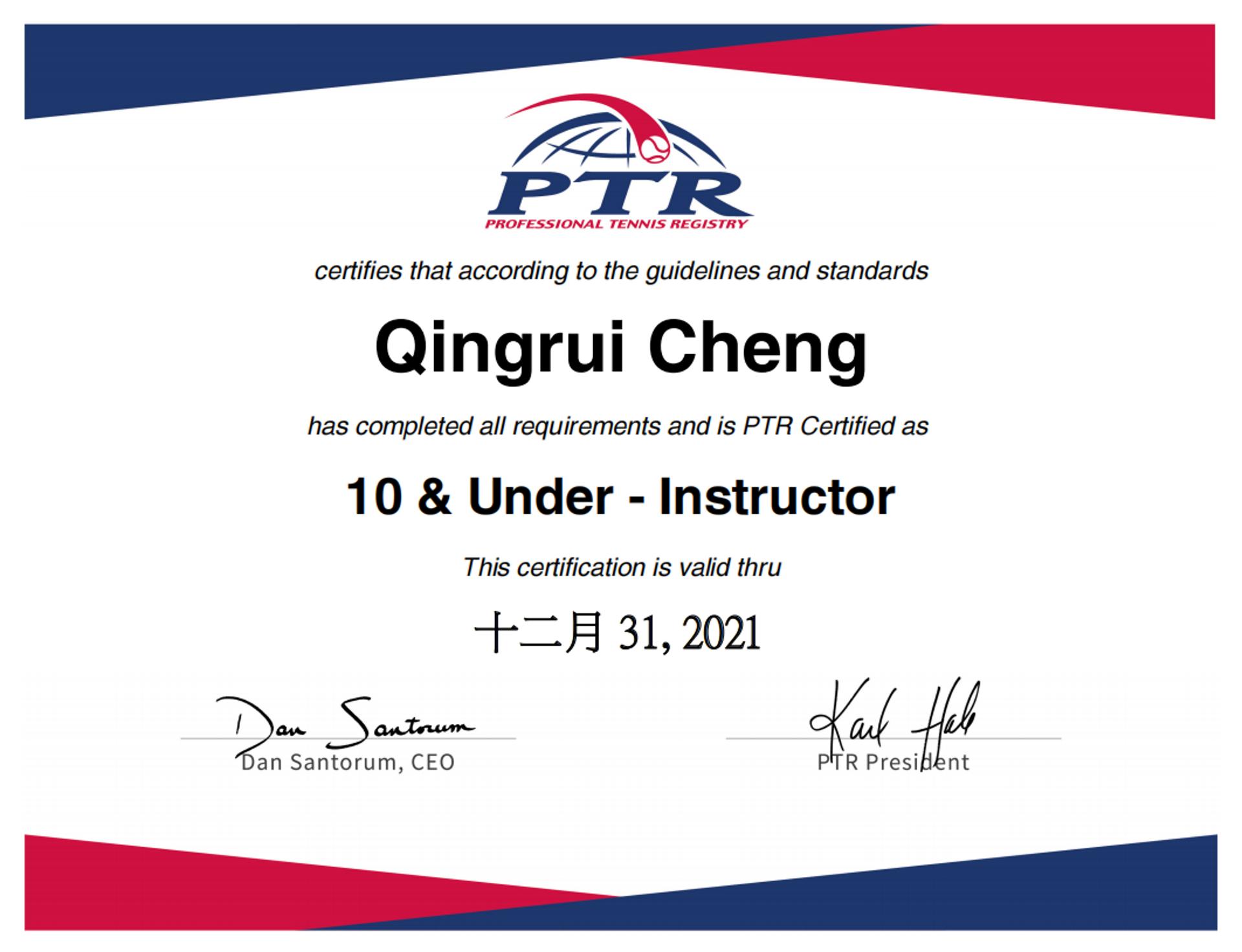 姓名:程庆瑞 籍贯:江苏 教学经历:2008年接触网球,2014年成为教练,2015年PTR国际教练员组织认证教练,2018年YONEX教练员组织认证教练,2020年EKT认证教练员,2021年IPEC体能运动协会认证教练 擅长领域:0基础教学到高水平训练,精通如果带孩子赢得比赛 课程模式:1对1,1对2,小班课(4~6人) 课程流程:少儿课程分入门教练(10课时),初级提升教学,中级进阶教学(20课时),高级突破教学;成人入门教学(10课时),成人陪练等 培训对象:3岁开始到成年70岁以内 训练时间:双方协调 训练地点:上门服务/地点灵活 常驻训练场地:苏州市体育中心 训练装备:学员自备球拍,运动鞋服,水杯毛巾等