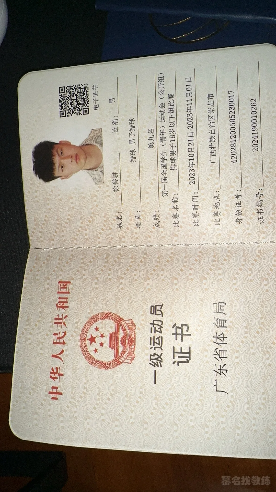 1. 2023年广东省青少年男子排球锦标赛第三名