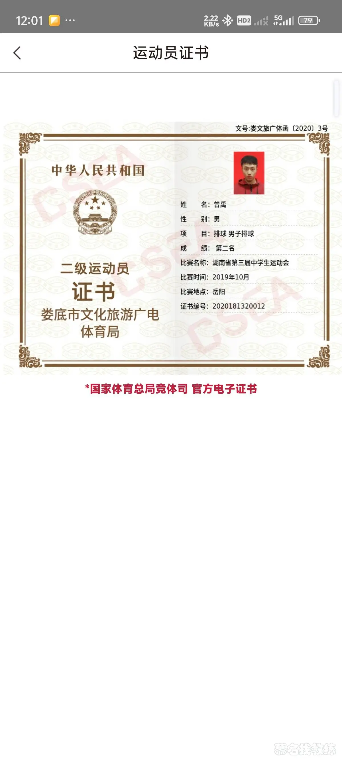 1.2019年湖南省第三届中学生运动会第二名