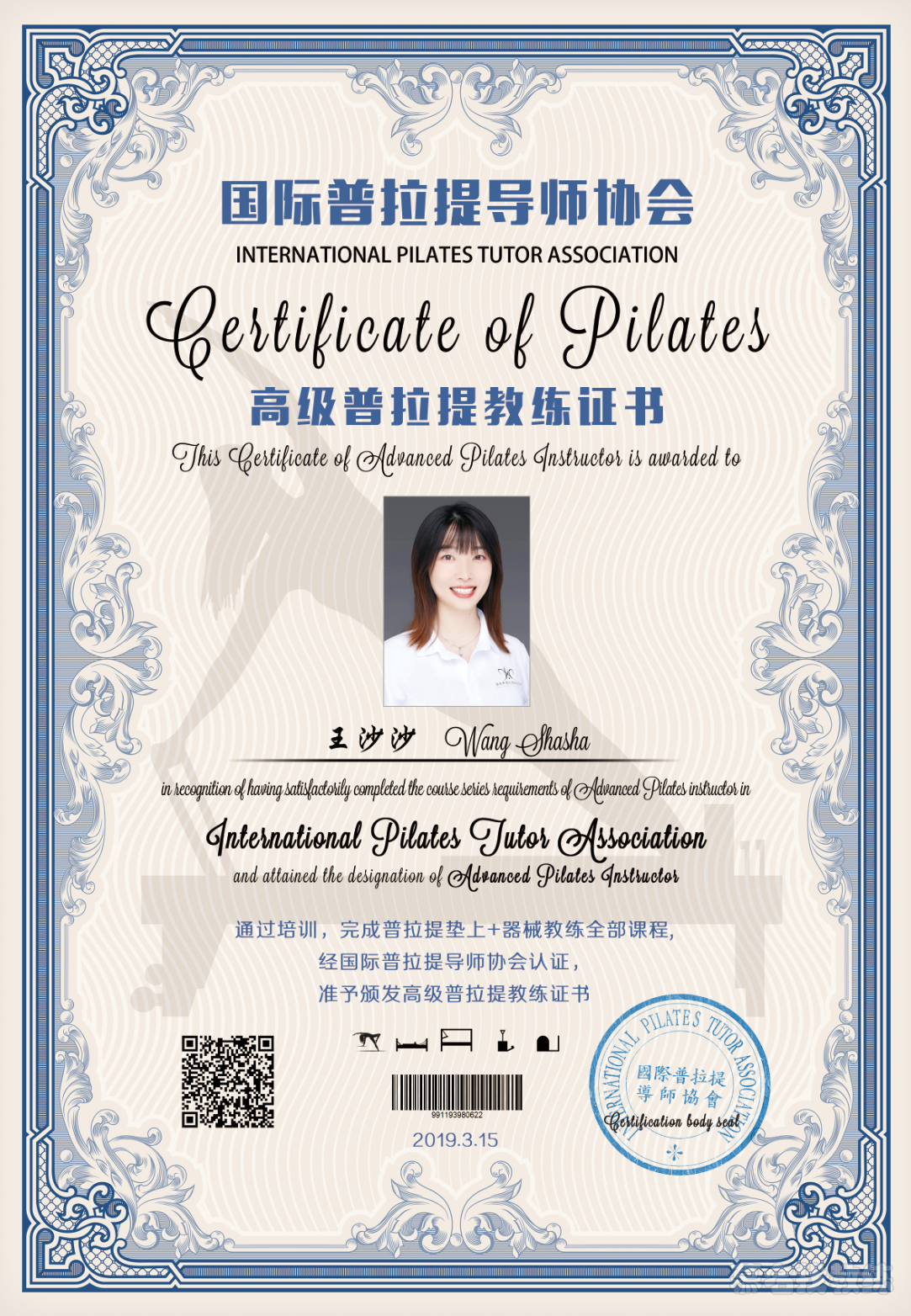2008年大学期间练习 2010考取哈他教练导师认证! 每年进修学习 擅长:空中、球、孕产、阴、流、普拉提、普拉提器械、理疗康复等 孕产 维密速瘦 少儿及成人体态矫正 哈他空中教练培训