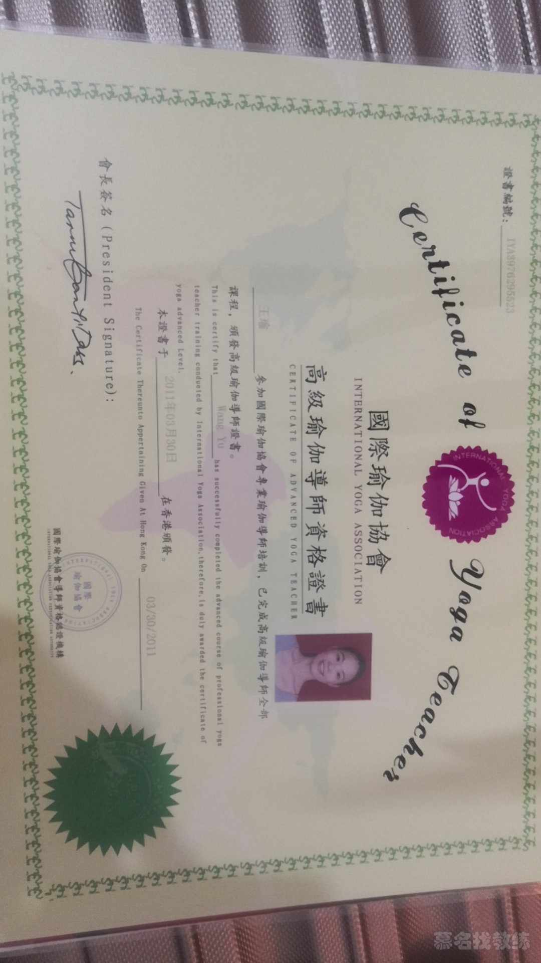 1. 2011年获得国际瑜伽协会高级瑜伽导师证书 2.2012年~2017年间,陆续获得普拉提教练证书、孕婴协会亲子瑜伽导师证书、普拉提私人教练证书、急速瘦身教练证等相关证书,并陆续参加各类运动康复、瑜伽、普拉提等相关课程培训,包括冥想疗愈内观学习等等。 孕产亲子瑜伽导师 精英私人教练 普拉提私人教练 普拉提理疗球教练