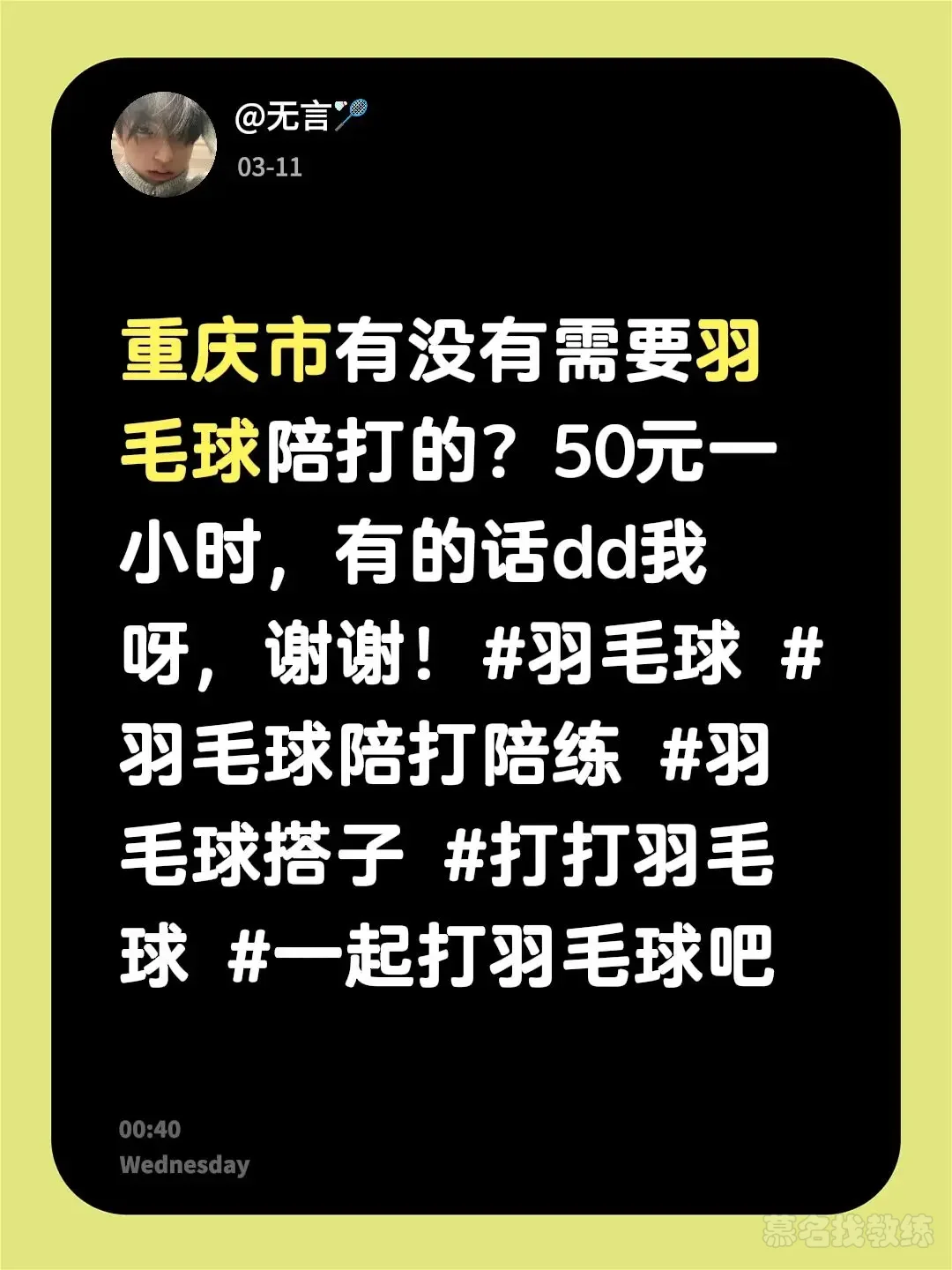 无言🏸 - 重庆羽毛球陪练