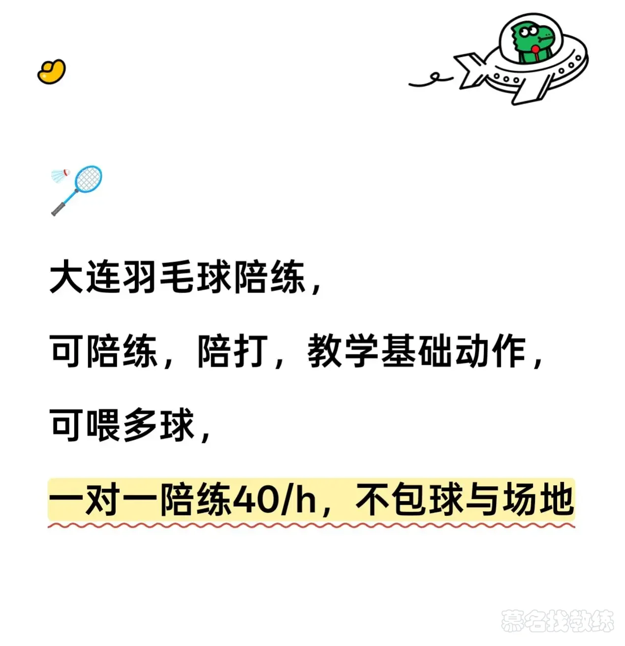 大连羽毛球陪练中羽4,有教学经验,可陪练教学基础动作,耐心,可发多球喂球,一对一陪练40/h,约球两小时起,成人/小孩均可,不包球与场地全大连市区可接,包你运动后大汗淋漓,新手可免费提供指导,场地需要您自行预定,提前约时间,可以发多球。