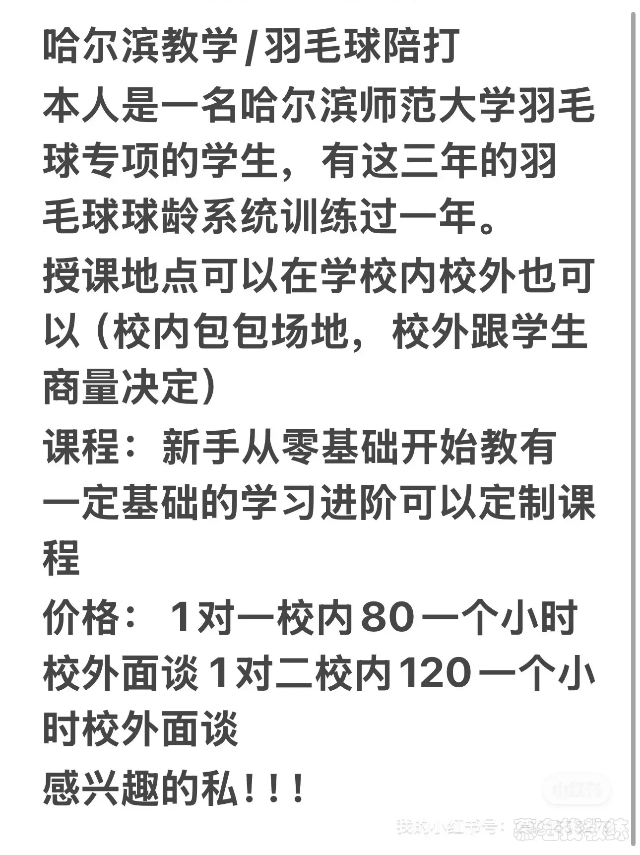 羽毛球教练/陪打/陪练。