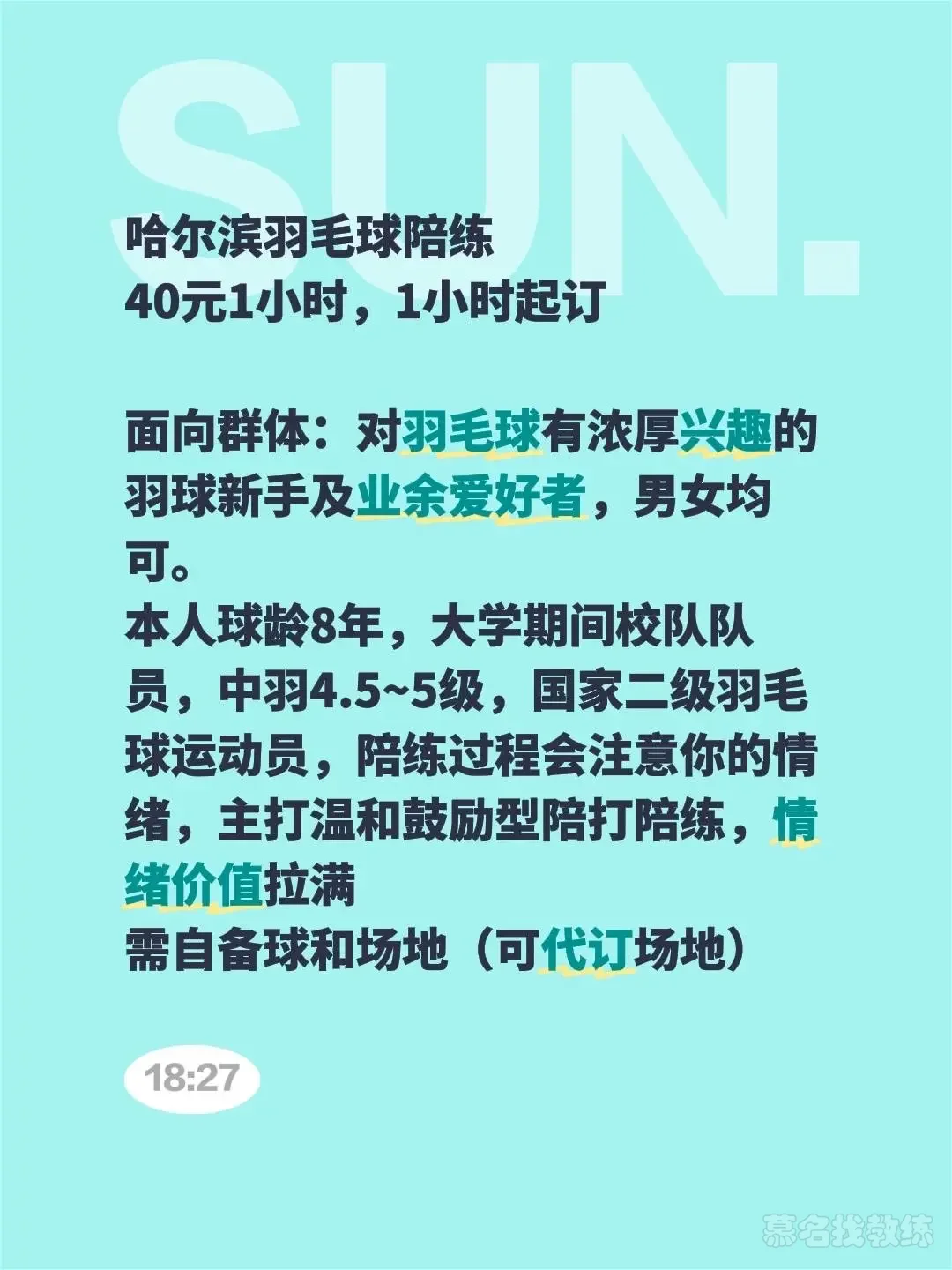 哈尔滨羽毛球陪练