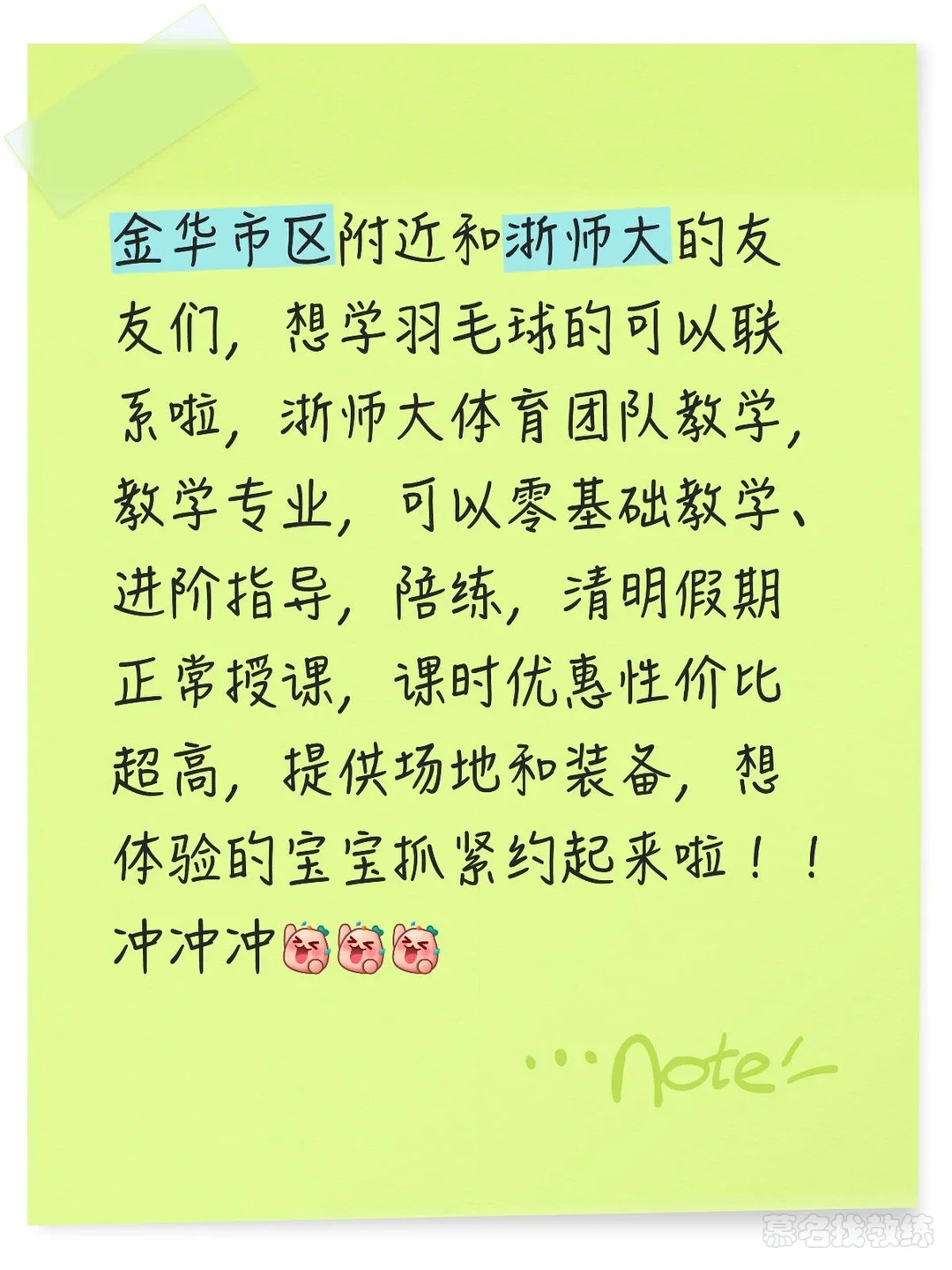 金华市区附近和浙师大有没有想学羽毛球的呀🏸🏸,浙师大体育羽毛球专业研究生授课教学,零基础教学,针对问题具体纠错,教学陪练截止一月底前,提供场地和装备,课时优惠性价比高,想体验的宝宝们可以私我哦!冲冲冲[赞R][赞R][赞R]