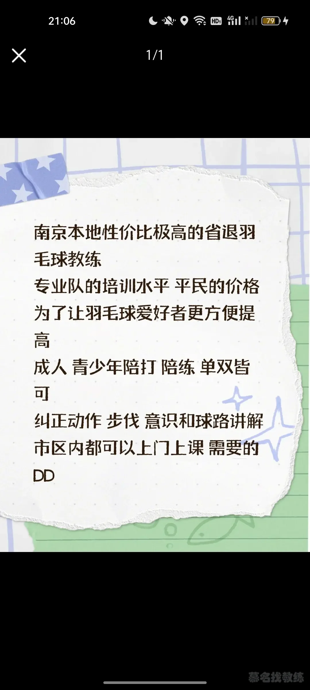 南京本地高性价比专业队退役羽毛球教练。