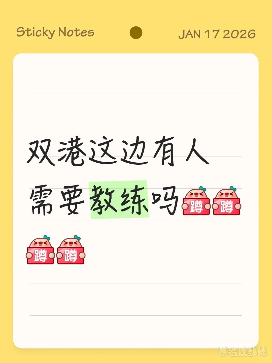 双港这边有人需要教练吗[蹲后续H][蹲后续H][蹲后续H][蹲后续H]