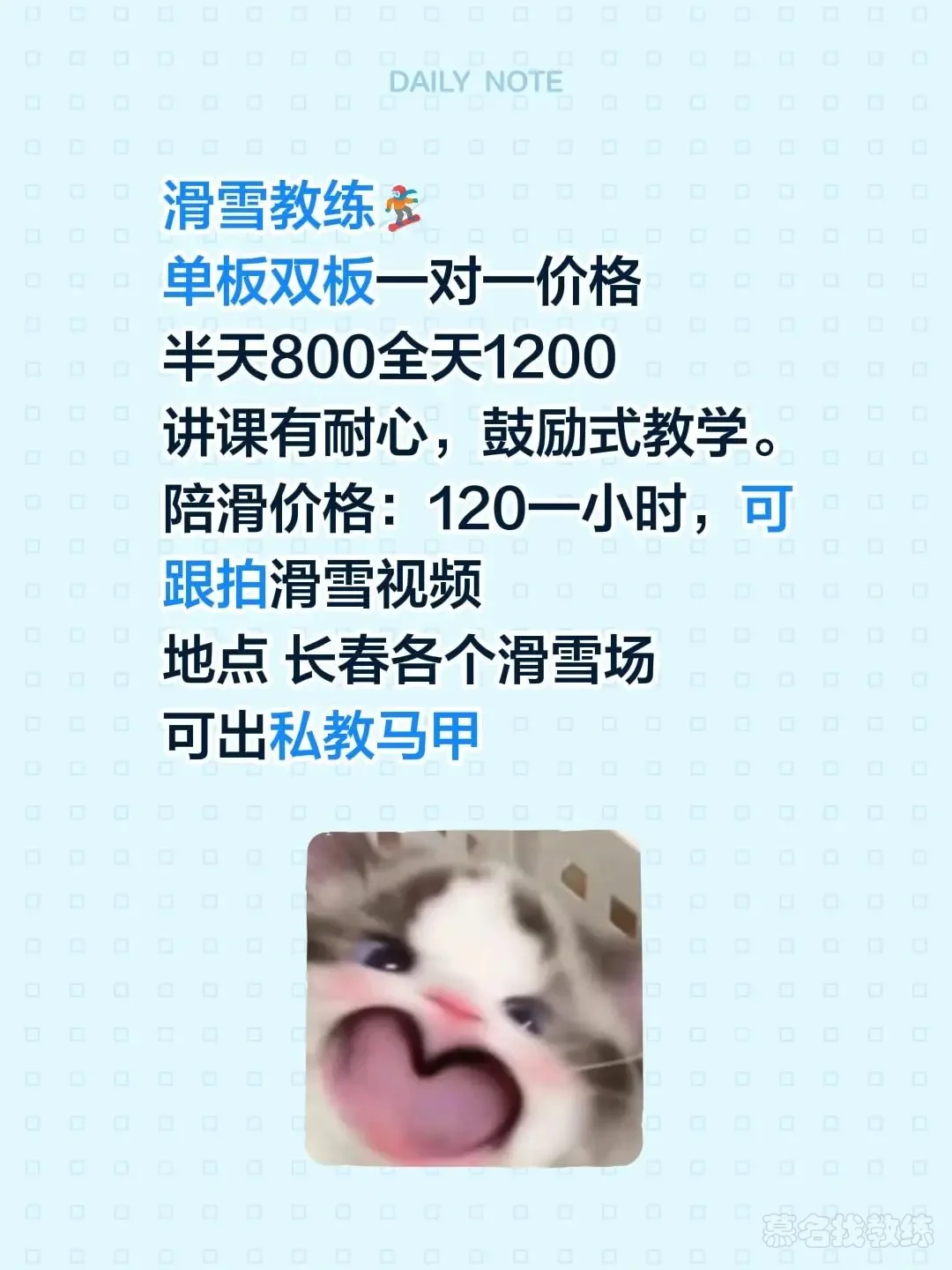 想学滑雪的可以找我约课啦周一至周五价格对比节假日有优惠哦!
