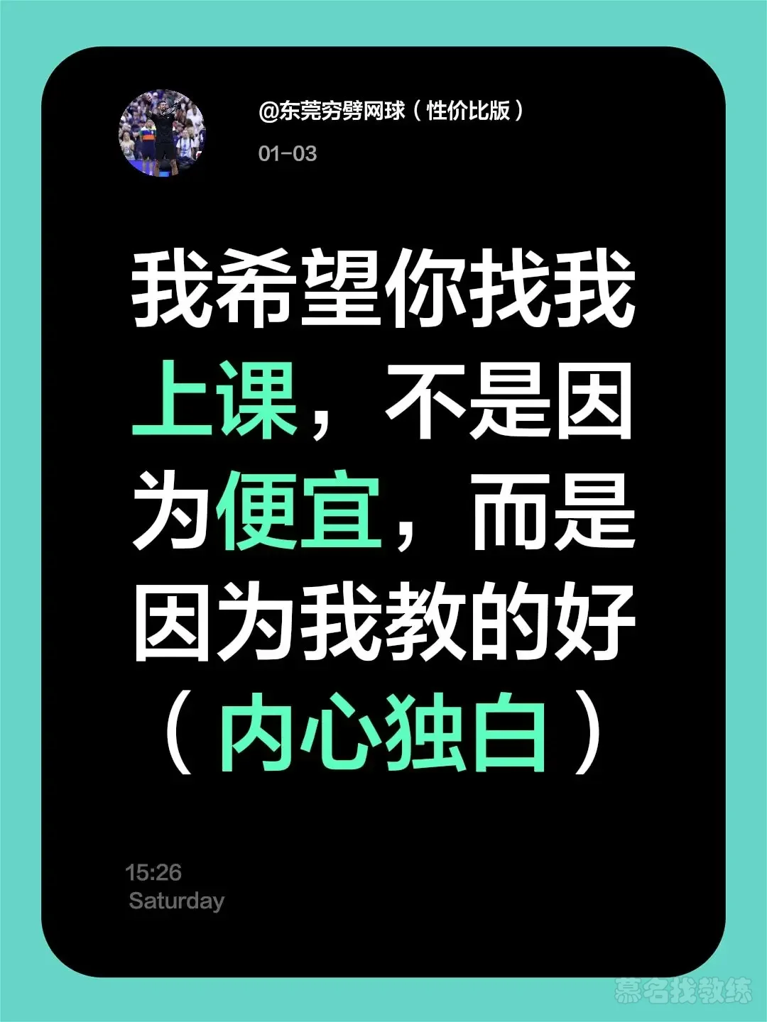 网球教练内心的独白。我希望你找我上课,不是因为便宜,而是因为我教的好(内心独白)
