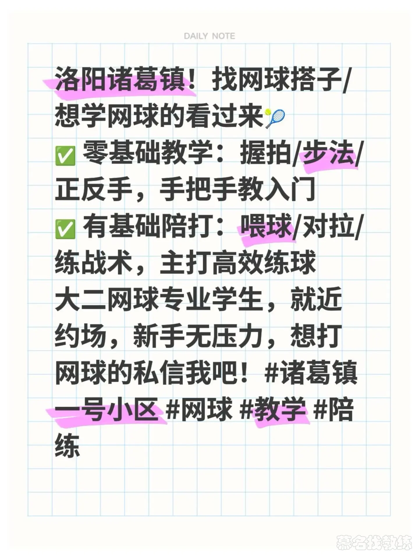 📍洛阳诸葛镇|大二河南体院网球专业在读🎾✅ 零基础教学:握拍/步法/正反手,从0到1手把手带✅ 精准陪打:喂球/对拉,就近约场,新手无压力想打球的私信我😀