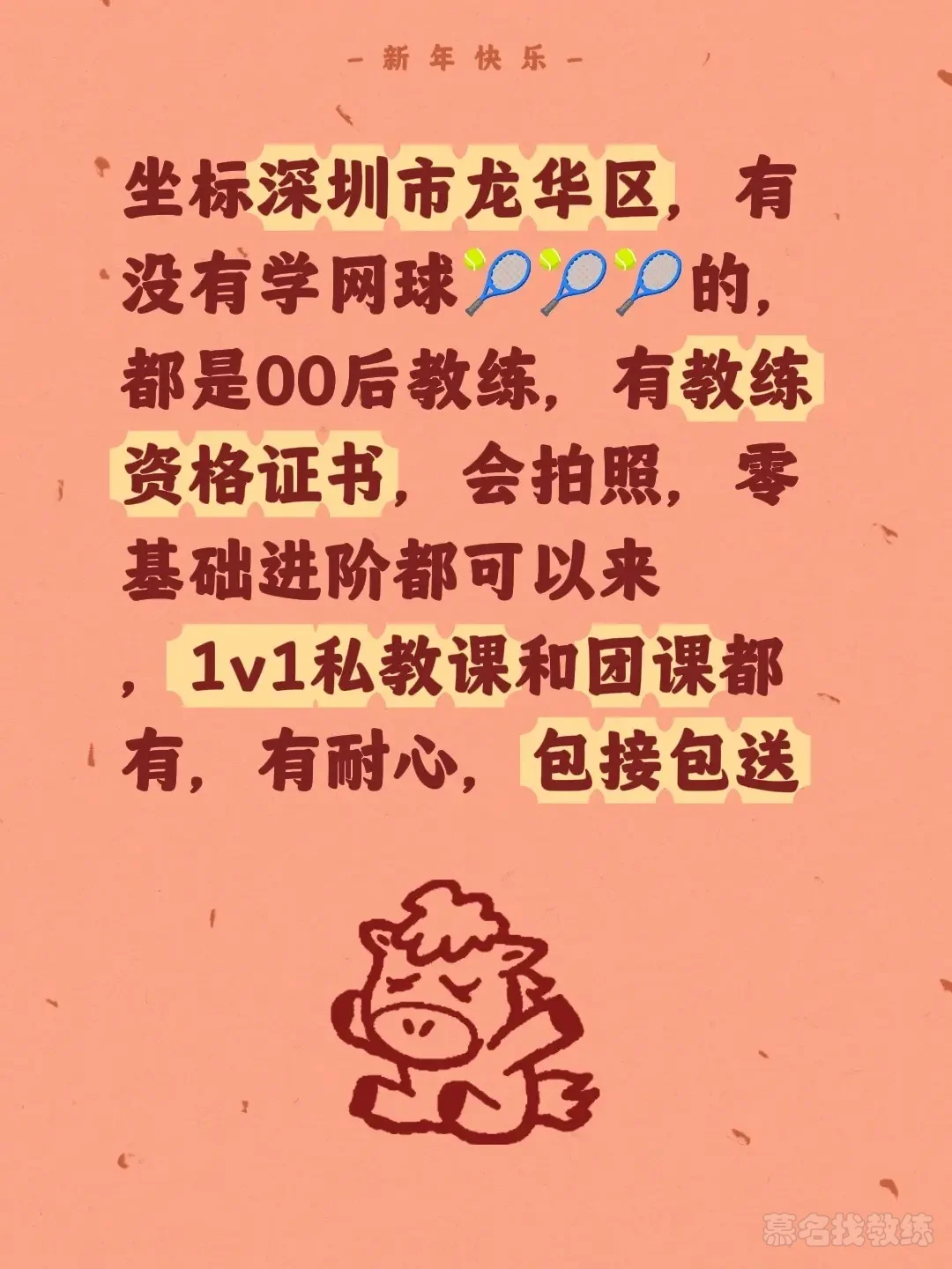 坐标深圳市龙华区,有没有学网球🎾🎾🎾的,都是00后教练,有教练资格证书,会拍照,零基础进阶都可以来,1v1私教课和团课都有,有耐心,包接包送