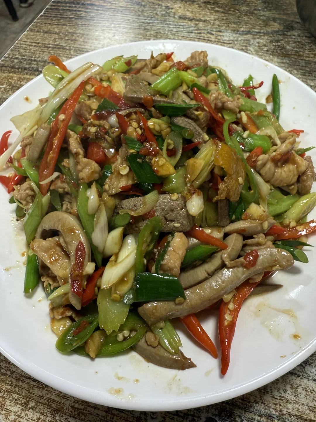 个人评价:口味对我来说略咸,掩盖了食材本身的鲜道,这三个菜我最喜欢的是辣椒豆腐,另外两个对我来说一般。酸辣鸡杂里面鸡胗和鸡肠基本是对半开,鸡胗比鸡肠好吃。猪三样处理的很干净,没啥怪味。米饭水唧唧的,不好吃,拖后腿了。