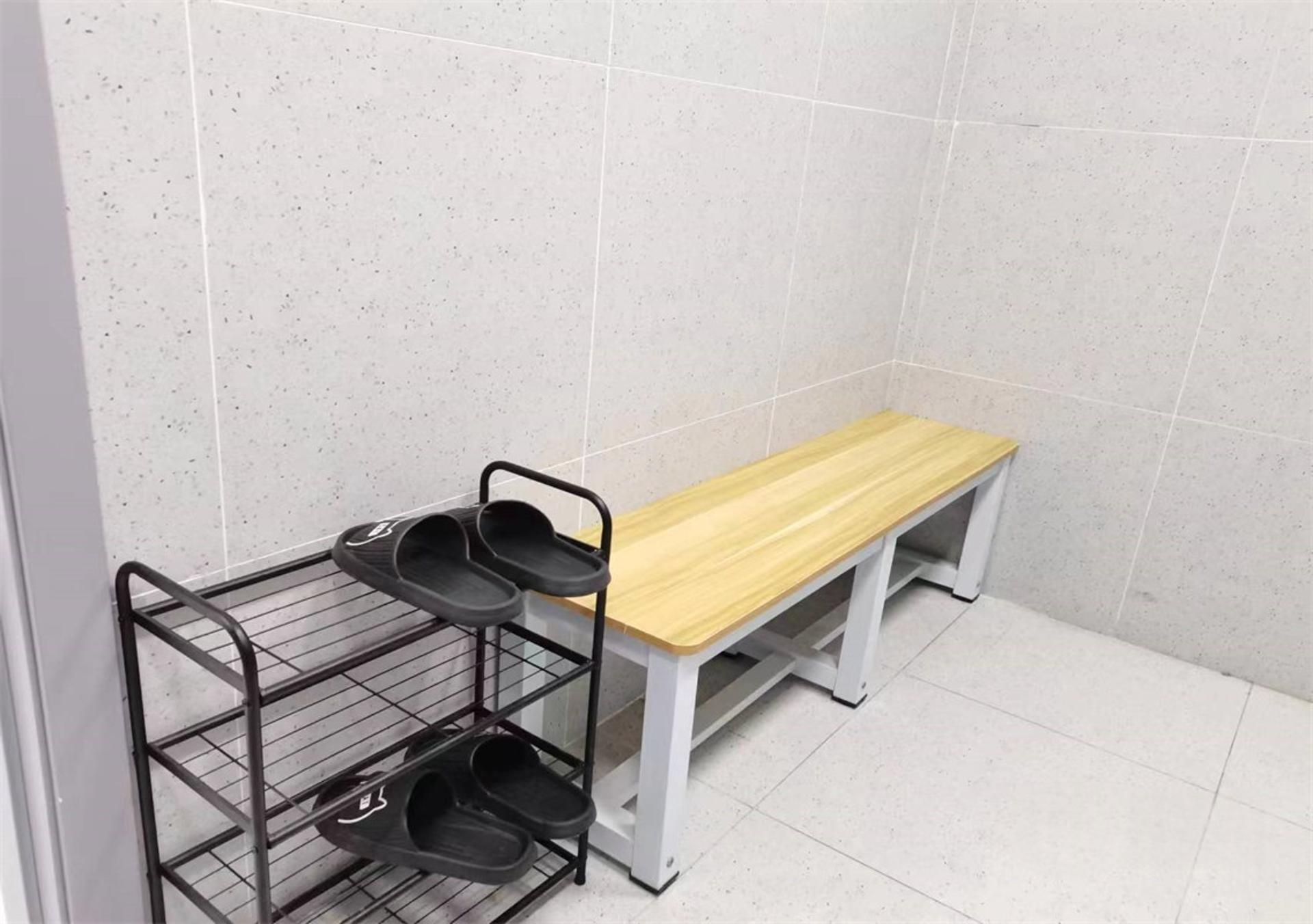 更衣室 更衣室:厕所及沐浴间均有,男女各三个,除周一周二检修不提供热水外,其它时间均提供