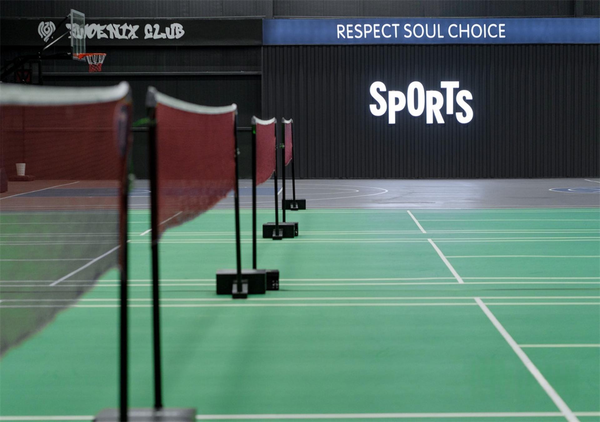 塑胶 木地板 室内 灯光 休息区 更衣室 沐浴室 教学 装备售卖 装备租赁 球拍穿线