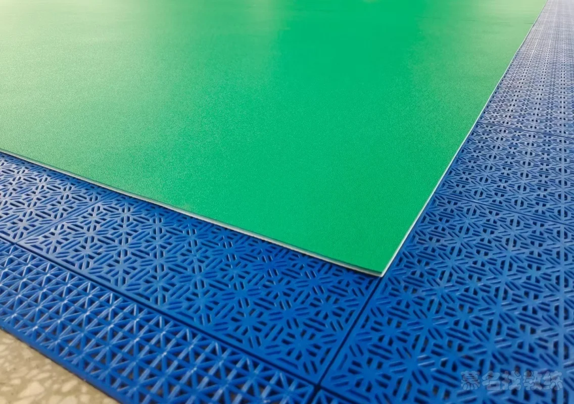 悬浮拼接地板:塑胶地板+双层缓震地胶;双层地胶