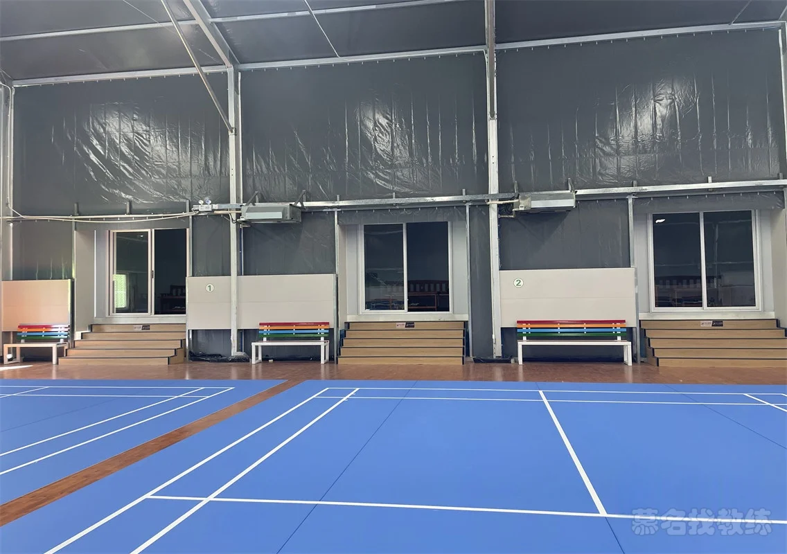 塑胶 木地板 室内 灯光 休息区 更衣室 沐浴室 教学 装备售卖 装备租赁 球拍穿线