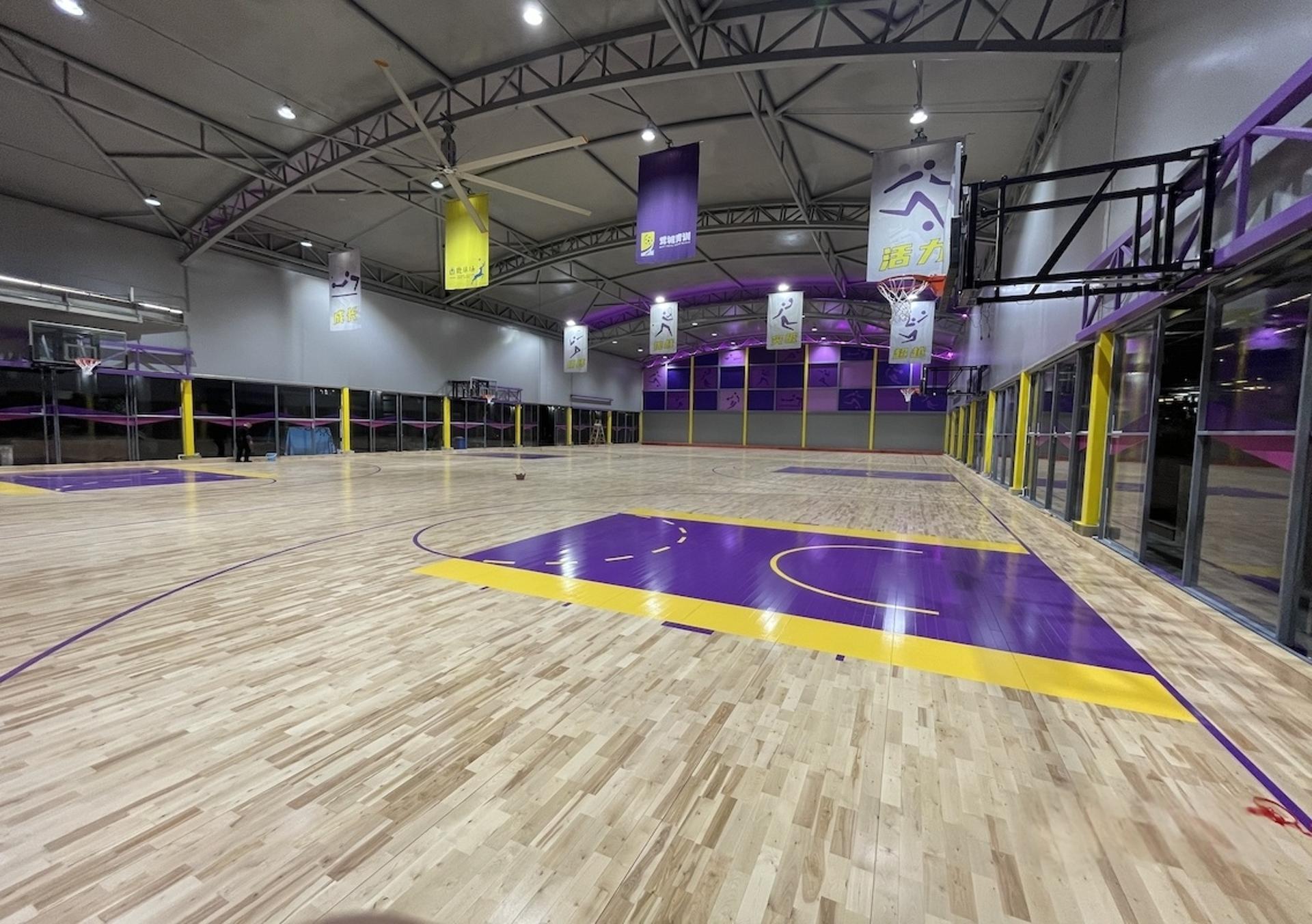 单层龙骨:龙骨地板+羽毛球专业地胶;C级木地板;单层地胶