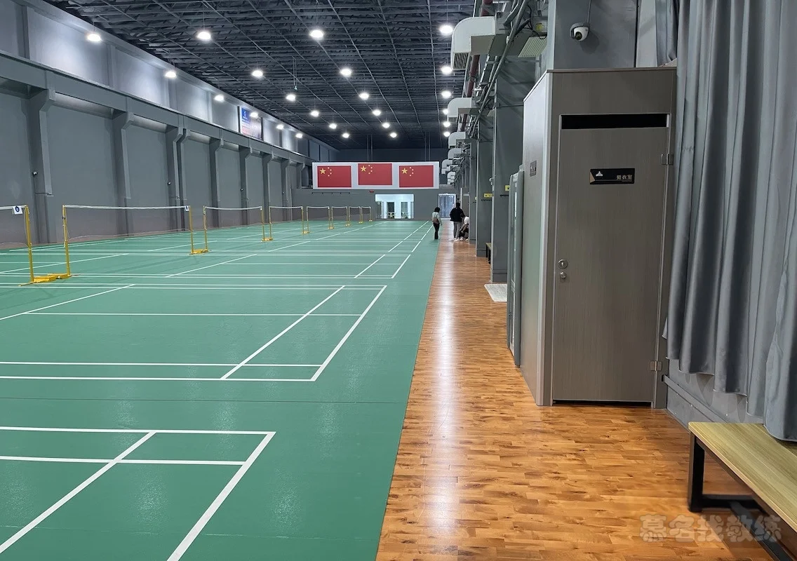 塑胶 木地板 室内 灯光 休息区 更衣室 沐浴室 教学 装备售卖 装备租赁 球拍穿线