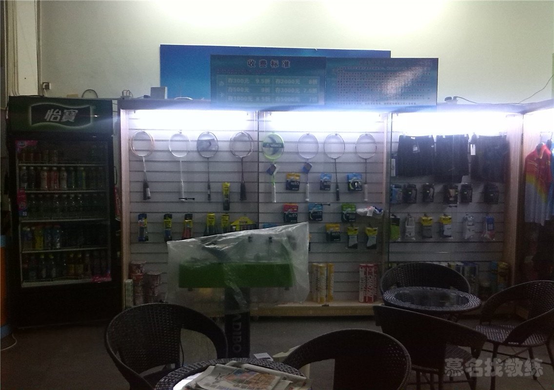 塑胶 木地板 室内 灯光 休息区 更衣室 装备售卖 装备租赁 球拍穿线