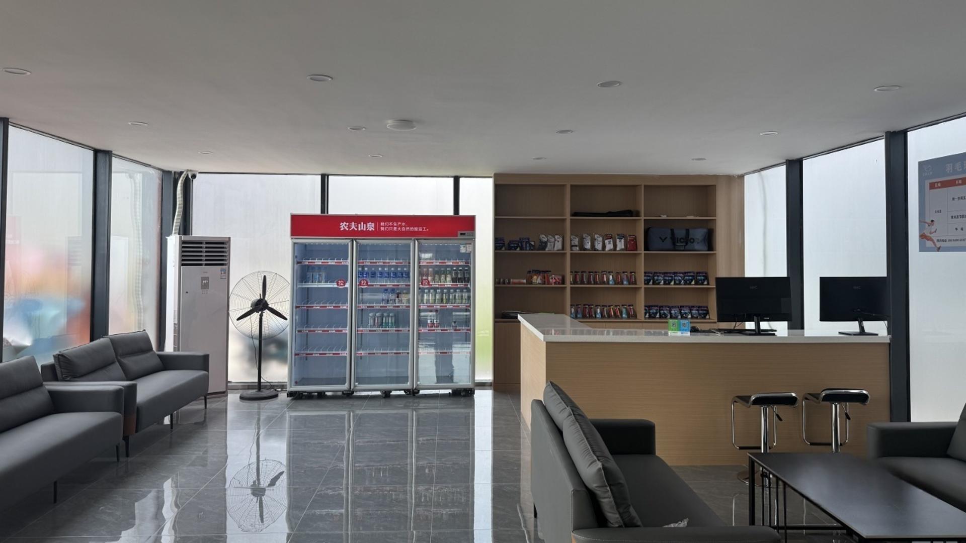 塑胶 木地板 室内 灯光 休息区 更衣室 沐浴室 教学 装备售卖 装备租赁 球拍穿线