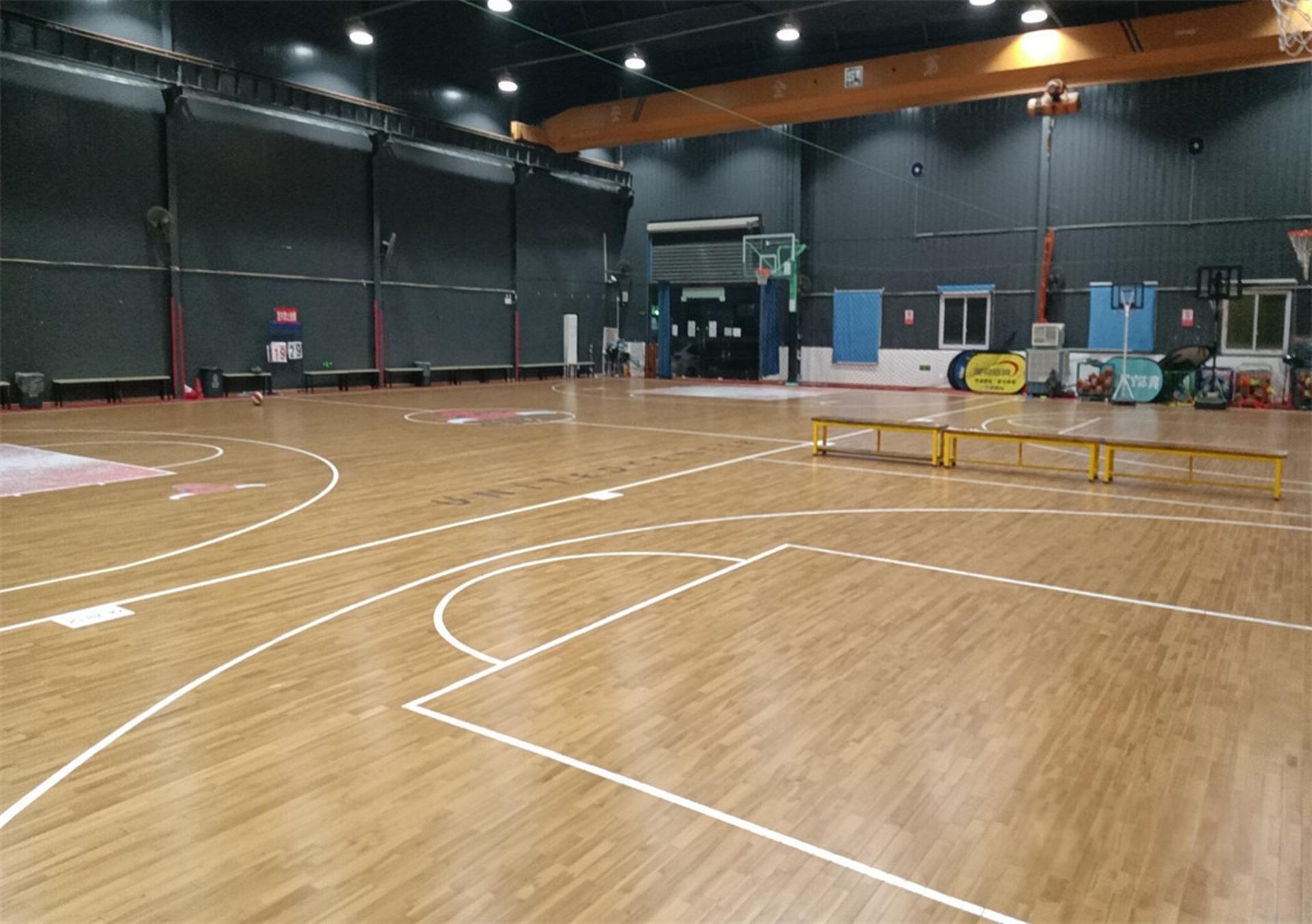 双层龙骨:双龙骨国标地板+胜利赛事底胶;品牌地胶