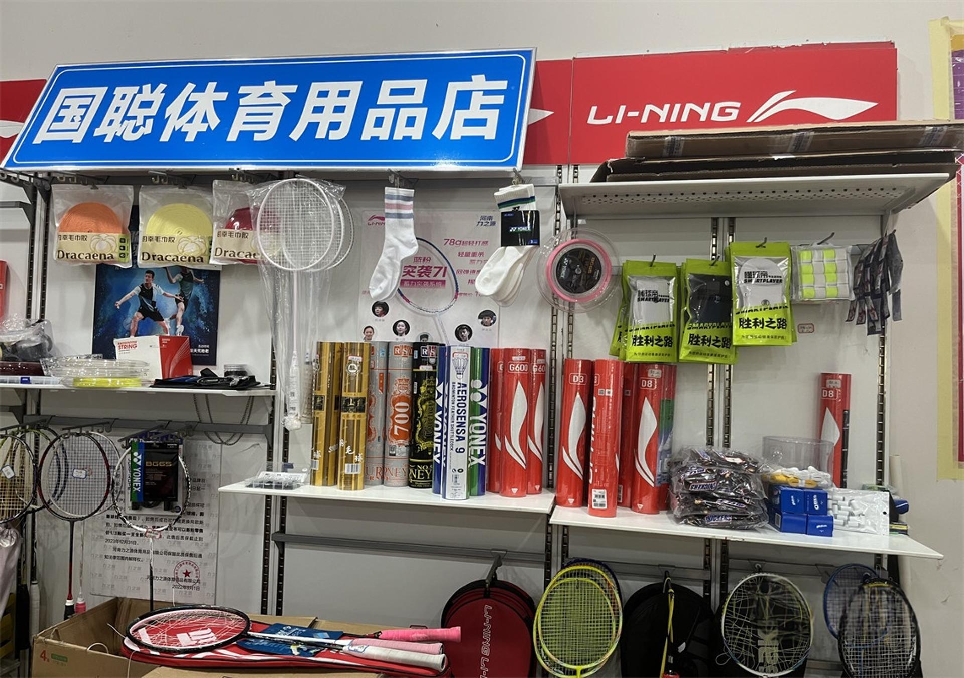 装备售卖 羽毛球:李宁和尤尼克斯;球拍:球拍有的幸和尤尼克斯